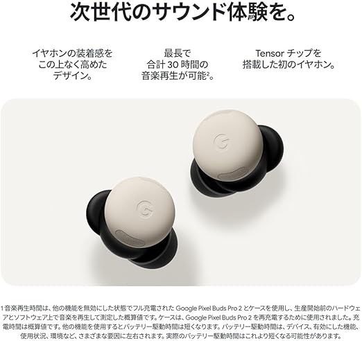 【次世代のサウンド体験を】Google Pixel Buds Pro 2 は、イヤホンの装着感をさらに高めたデザインで、耳にぴったりフィット。初の Google Tensor チップを組み込んだ、Google の AI を搭載したイヤホンです。