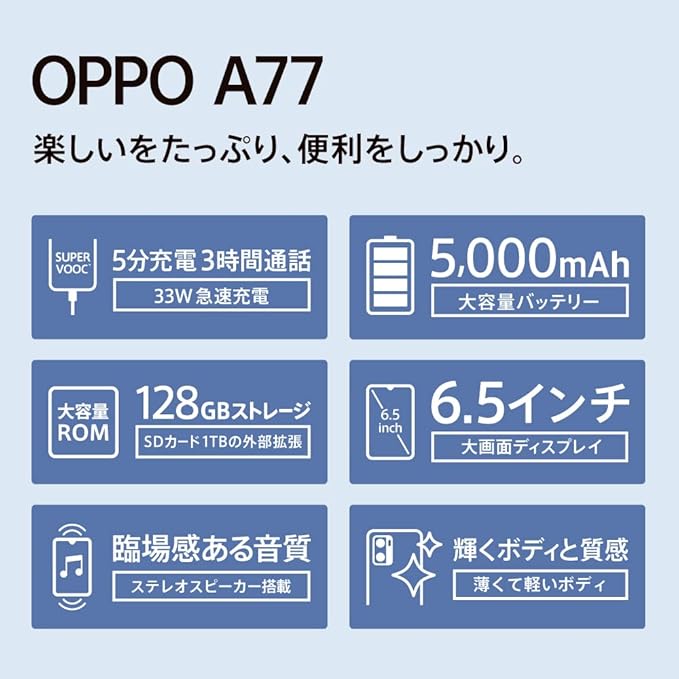 OPPO A77 ブラック CPH2385 docomo/au/SoftBank/Rakuten Mobile 回線対応 SIMフリー スマートフォン a
