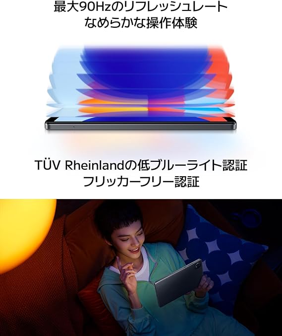 【90Hzリフレッシュレート対応ディスプレイ】コンパクトでありながら、90Hzの高リフレッシュレートにより、映像を観る時やコンテンツをスクロールする時の表示をよりなめらかに表現。最大600nitsのピーク輝度