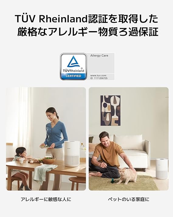 【TUV Rheinland認証 厳格なアレルギー物質ろ過保証】TUV Rheinlandの認証を受けたXiaomi スマート空気清浄機 4 Compactは、大気中のアレル