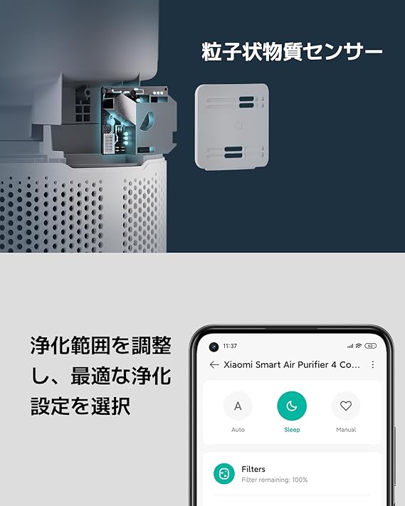Xiaomiスマート空気清浄機 4 Compact 【16.5畳対応&節電対策&極静音】脱臭 集じん 花粉 ペット臭い ハウスダスト PM2.5 アレルギー 高性能HEPAフィルター 小型 卓上 床置き アプリ遠隔操作/音声コントロール 3段階風量調節 空気質モニタリング a