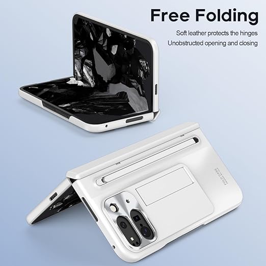 ケース 人気 Google Pixel 9 Pro Fold / 10 Pro Fold 携帯全面保護+強化ガラスフィルム+隠しブラケット機能 ヒンジ保護 きんぞくラッカ+ペン メタルレンズカバー 薄型 軽量 手帳型 折り畳み おしゃれ 人気 かわいい フリップ 衝撃吸収 キラキラ QI ワイヤレス充電サポート 財布型 面白い 二層構造 取り外し - 白 a