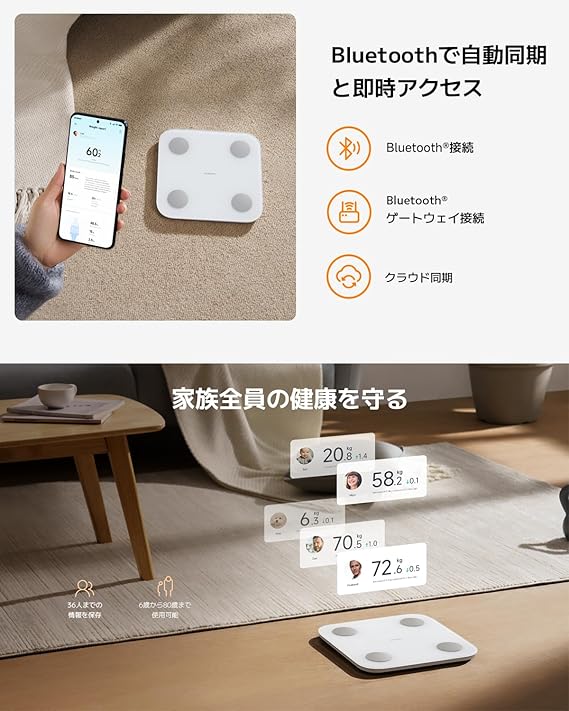 25の項目を測定可能:1回の測定で、体脂肪、筋肉量、水分含有量、タンパク質量、骨ミネラル密度などの身体組成を評価する25種類の体組成指標の分析レポートを作成できます。健康状態を詳細に分析して、あらゆる変化をすばやく簡単に特定します。ご注意:専用アプリXiaomi Homeに対応していますが、Google Fit との連携はできませんので、ご購入の際はご注意ください。