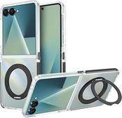 Galaxy Z Flip7 用 ケース 強磁力リング 耐衝撃 薄型 Galaxy Z Flip7 カバー 専用 ハード 360°回転スタンド 縦横両対応 スマホケース リング マグネット搭載 防指紋 米軍MIL規格 隠し収納式 多機能一体スタンド (黒) 29-Flip7-01 a