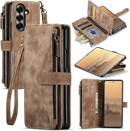 SeGinn Galaxy Z Fold7 対応 ケース 手帳型 カバー PUレザー 多財布デザイン スタンド機能付き 磁気バックル付き カード収納 コイン収納 ギャラクシーZフォールド7 ケース 手帳型 大容量財布型 収納ポケット 衝撃防止 擦り傷防止 スクリーン/カメラ保護 実用性高 galaxy z fold7 財布型ケース (ブラウン) a