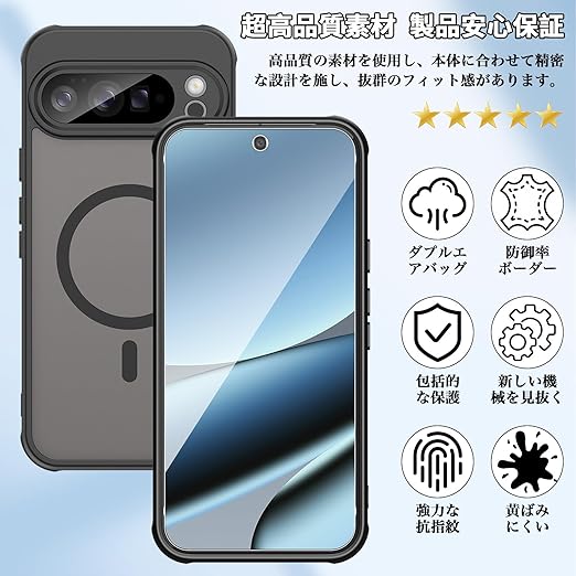 【1個+2枚セット】For Google Pixel 10 Pro XL ケース(1個・MagSafe 対応)+ガラスフィルム(2枚) Pixel 10 Pro XL 対応 保護ケース Greerass ガラスフィルム付き 薄型 超軽量 耐衝撃 擦り傷防止 指紋・汚れ防止 手触り良い 着脱簡単 (ブラック) a