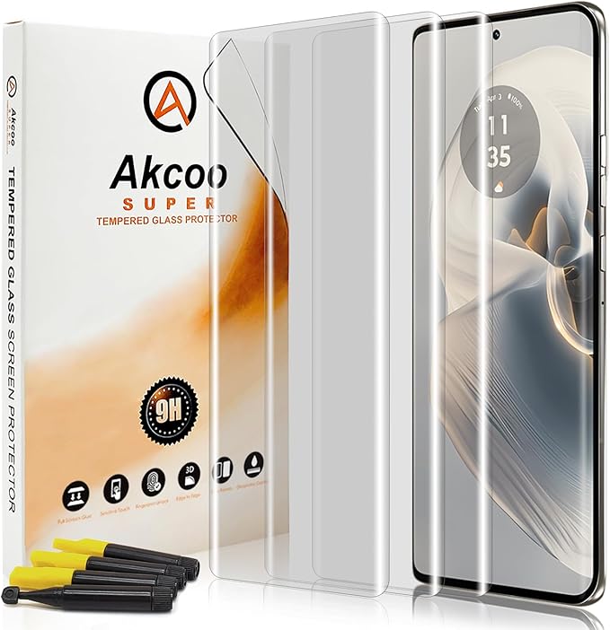 Akcoo [3枚入] Motorola Edge 50 Proガラスフィルム (液体分散技術)全面吸着,UV硬化保護フィルム タッチ感度が良い 指紋認証対応 Moto edge 50s Pro 用 a