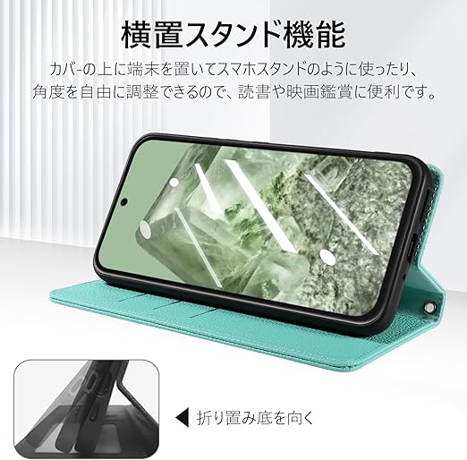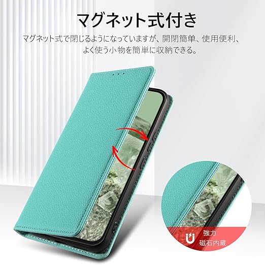 google pixel 8a ケース 手帳型 カード収納 グーグルピクセル8a マホケース 上質レザー 横置きスタンド機能 折りたたみ googleピクセル8a ケース スタンド付き pixel8a 手帳型ケース 内蔵マグネット 開閉式 pixel8a 携帯ケース 財布型 軽量薄型 耐衝撃 全面保護 手触りいい 指紋防止 【SHANGHAO】ストラップホール付き 6.1インチ ミントグリーン a