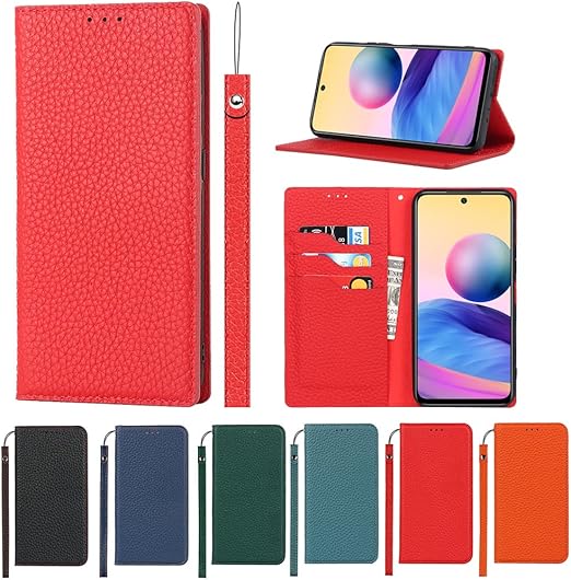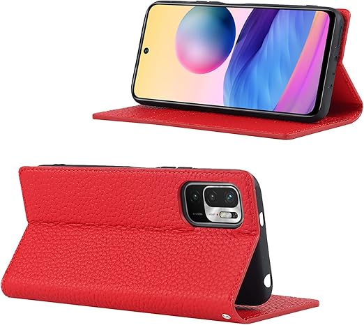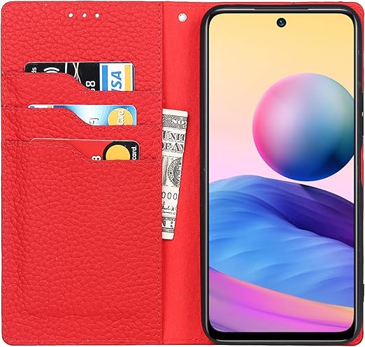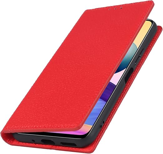 Eastwave for Xiaomi Redmi Note 10 JE ケース 本革 牛革 for Redmi Note 10Tケース 手帳型 for Redmi Note10 JE XIG02 カバー 手帳 本革 柔らかい 本皮 スプラットホール付き スプラット同梱 内蔵マグネット-レッド a