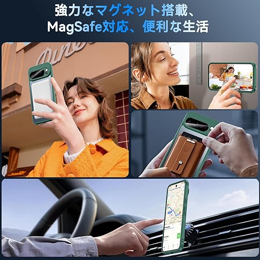 Google Pixel 10 Pro XL ケース 【ガラスフィルム付き・MagSafe対応】 OWKEY グーグル ピクセル10プロxl カバー 半透明 黄ばみなし ストラップホール 全面保護 耐衝撃 耐久性 薄型 軽量 指紋防止 マグネット搭載 マグセーフ対応 Google Pixel 10 Pro XL ケース グリーン a