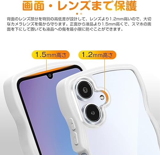 【全面保護・滑り止め機能】カメラレンズの周りに段差をつけて擦り傷を防ぎます。携帯電話ケースの側面は波型のデザインを採用しており、グリップが良く、携帯電話が誤って落下するのを効果的に防ぎます。