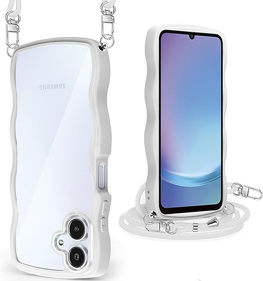 Galaxy A25 5G ケース/SC-53F ケース クリア ショルダー ギャラクシー A25 5G カバー うねうね 透明 人気 かわいい 耐衝撃 スマホケース ストラップ付き 取り外し可能 長さ調整可能 首かけ 肩掛け 薄型 軽量 TPU ワイヤレス充電対応(ホワイト) a