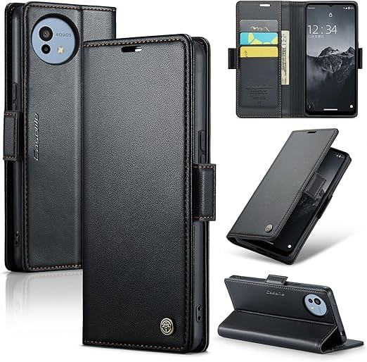 AQUOS wish4 ケース 手帳型 AQUOS wish4 SH-52E SH-M27 A402SH 手帳型ケース シャープ アクオス ウッシュ4 ケース手帳 スマホケース 携帯ケース 携帯カバー スマホカバー RFID磁気防止 サイドマグネット式 カード収納 スタンド機能 耐摩擦 全面保護 (AQUOS WISH4 SH-52E A402SH SH-M27 対応) ディープブラック a
