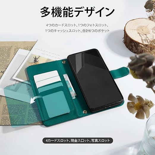 ★【カード収納機能・スタンド機能】Redmi 14C ケースの内側には6つの独立したポケットがあり、クレジットカード、バスカード、IDカードなどを収納でき、持ち運びが便利で、余分なものを持ち歩かなくても旅行が
