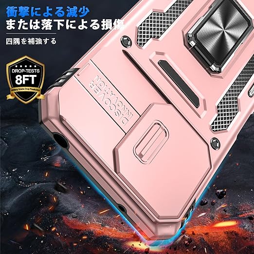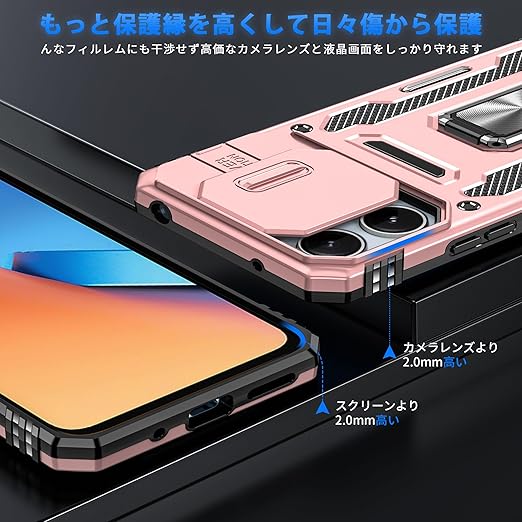 Xiaomi Redmi 12 5G/4G/ ケース Redmi Note 12R ケース リング付き スライド式カメラプロテクター付き 衝撃吸収 保護ケース PC スタンド機能 車載ホルダー対応 米軍MIL規格 金属リング 擦り傷防止 滑り止め Redmi 12 5G/4G/Note 12R カバー 耐衝撃 横置き機能 人気 ピンク C92-hm12 5g-03 a