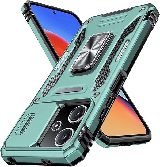 Xiaomi Redmi 12 5G/4G/ ケース Redmi Note 12R ケース リング付き スライド式カメラプロテクター付き 衝撃吸収 保護ケース PC スタンド機能 車載ホルダー対応 米軍MIL規格 金属リング 擦り傷防止 滑り止め Redmi 12 5G/4G/Note 12R カバー 耐衝撃 横置き機能 人気 浅緑 C92-hm12 5g-07 a
