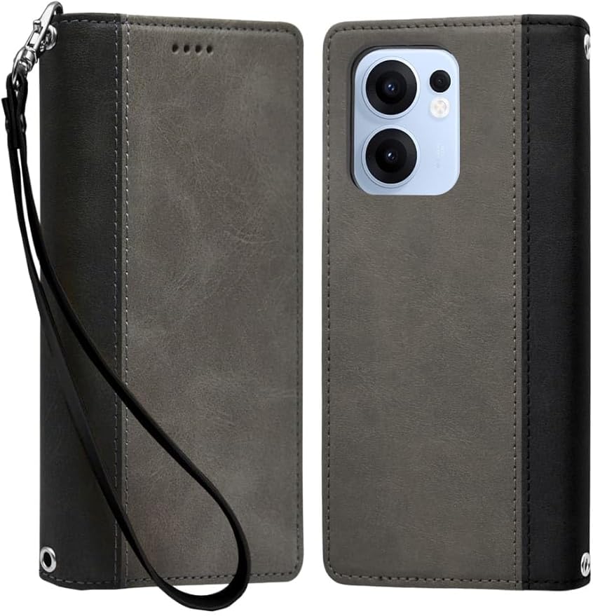 シズカウィル OPPO Reno13 A CPH2699 ケース カバー 手帳型 本革調 レザーケース グレー×ブラック 1個入り a