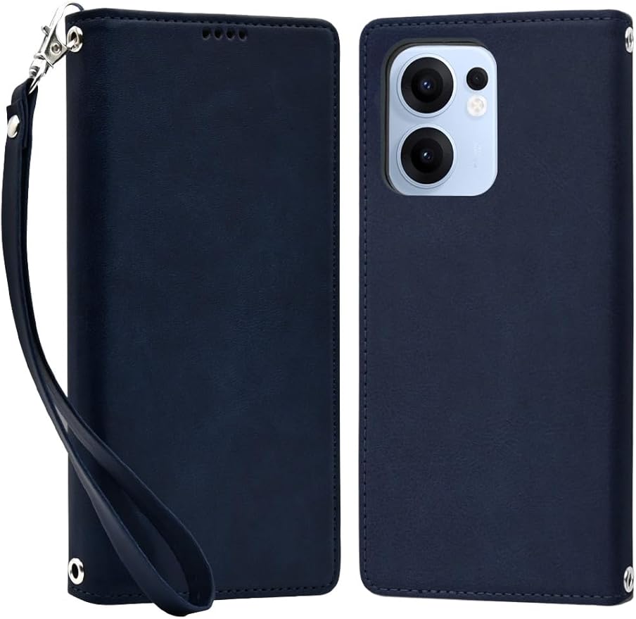 シズカウィル OPPO Reno13 A CPH2699 ケース カバー 手帳型 本革調 レザーケース ネイビー 1個入り a