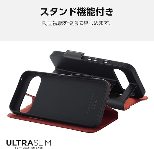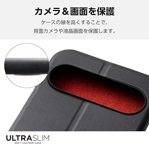 端末の薄さや軽さを損ねない、薄型・超軽量なウルトラスリムタイプのソフトレザーケース(手帳型)です。