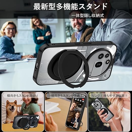 Nothing phone 3a Pro ケース クリア リング付き 360°回転スタンド MagSafe対応 ワイアレス充電対応 耐衝撃 Nothing Phone (3a) Pro カバー 薄型 軽量 人気 nothing phone3a pro スマホケース 透明 PC 車載ホルダー対応 (クリア) a
