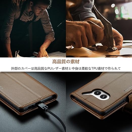 【上品なデザイン】外部のカバーは高品質なPUレザー素材で作られ、素材の表面に手触りは非常に良い、上品で洗練されたデザインです。中身は柔軟なTPU素材で作られて、スマートフォンの全面保護でき、脱着簡単です。【磁気バックル付き】カバーを閉じると勝手にマグネットが着くので手間がかかりません。
