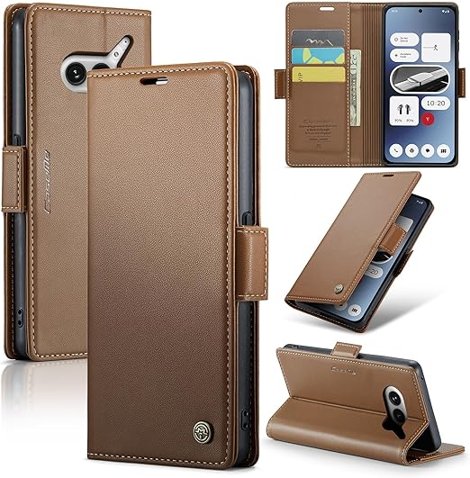 ReHowy Nothing Phone 2a 対応 ケース 手帳型 PUレザー 携帯便利 保護カバー 衝撃防止 擦り傷防止 全面保護 磁気バックル付き スタンド機能付き カード収納 コイン収納 実用性高 携帯カバー レトロ nothing phone 2a 用 手帳型ケース ブラウン a