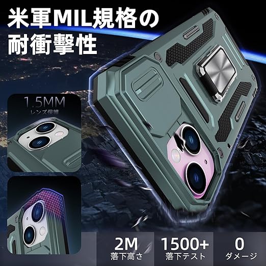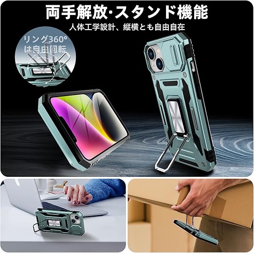 Redmi Note 13 Pro 5G / Xiaomi Poco X6 5G 用 ケース リング 耐衝撃 車載ホルダー対応 カメラ保護 傷防止 米軍MIL規格 携帯カバー 滑り止め 指紋防止 頑丈 タンド タフ・アーマー おしゃれ TPU+PC材質 ライトグリーン 111-HMN13PRO-07 a