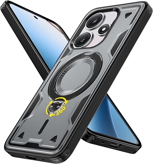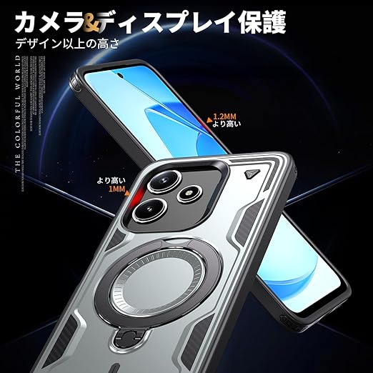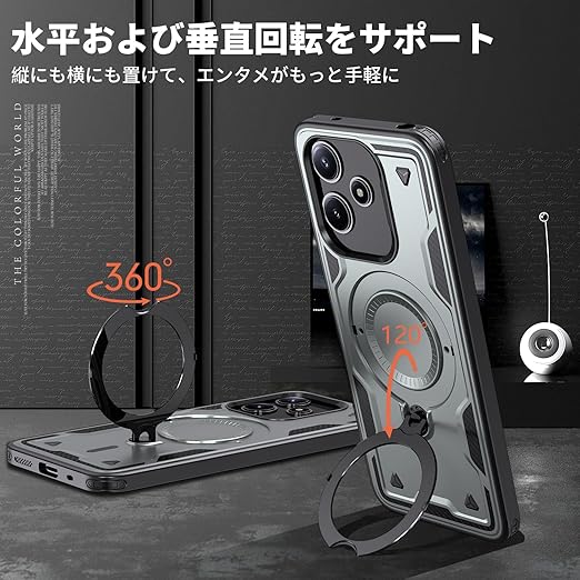 Xiaomi Redmi 12 5G 用 ケース 耐衝撃 スタンド付き Magnetic対応 Redmi 12 5G カバー リング TPU+PC ワイヤレス充電 米軍MIL規格取得 スタンド機能 (グレー)117-XM125G-07 a