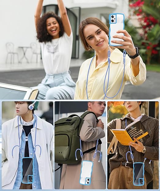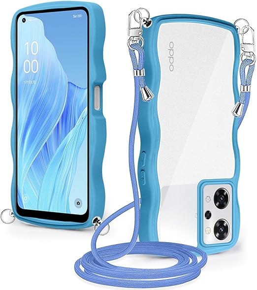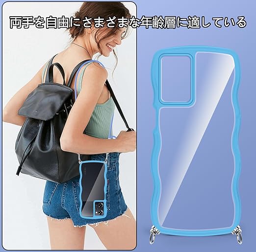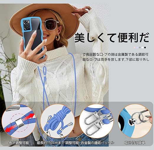 OPPO Reno9 A/OPPO Reno7 A ケース クリア ショルダー 耐衝撃 かわいい 人気 OPG04 カバー 透明 スマホケース 薄型 軽量 首かけ 肩掛け 縄掛けケース ストラップ付き 取り外し可能 長さ調整可能 ワイヤレス充電対応(ブルー) a