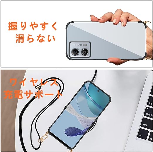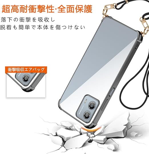 Moto G53j 5G 用 ケース クリア ショルダー 新型韓国 可愛い 薄型 軽量 TPU バンパー メッキ加工 耐衝撃 moto g53j 5g 対応 カバー 首掛け 肩掛け 斜めかけ 縄掛けストラップ付き 1.5MM 取り外し調節可能な 全面保護 指紋防止 黄変防止 落下防止 衝撃吸収 ワイヤレス充電対応【縄掛け-クリア 】 a