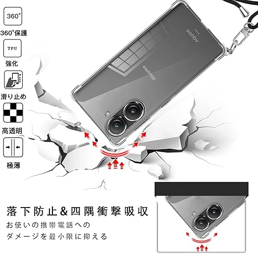 ASUS ZenFone 10 ケース Zenfone 9 ケース クリア ゼンフォン 9/10 マホケース カバー ネック ショルダー ストラップ付き 肩掛け 斜めかけ AI2302 縄掛けケース 縄掛け TPU 薄型 軽量 取り外し可能 落下防止 柔軟で変形しない 【透明】 a