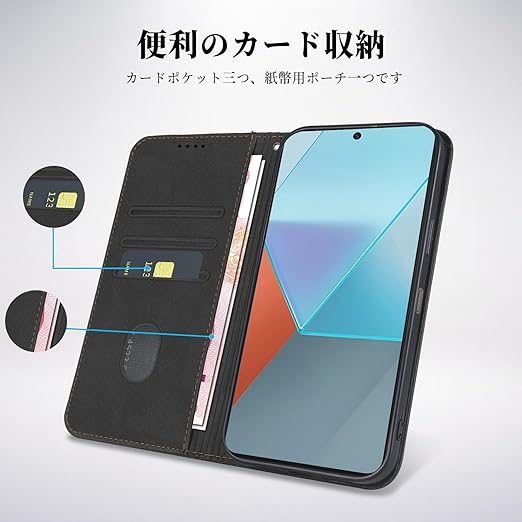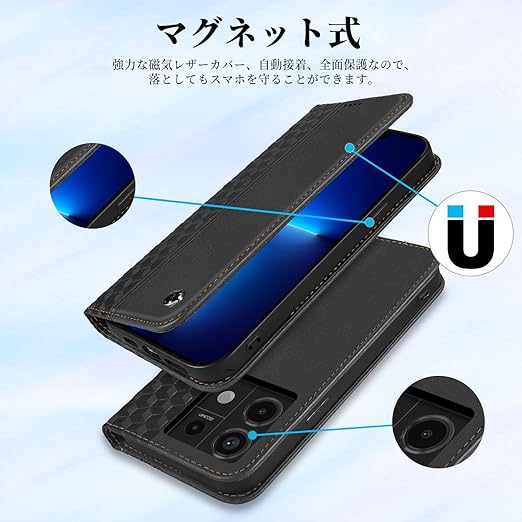 【上質な素材&スタンド機能】:Xiaomi Redmi Note 13 Pro 5G ケースのシェルは高品質的なPUレザーとtpu素材を採用しており、耐衝撃性に優れ、着脱も簡単、放熱性が良い、キズやホコリを防ぐことが
