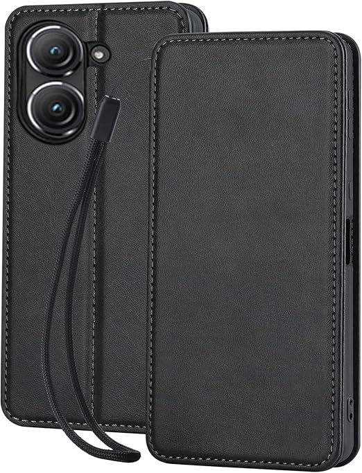 ASUS Zenfone 9 / Zenfone 10 ケース 手帳型 ゼンフォン 9 ケース カバー 保護ケースレザー 財布型 カード収納 スタンド機能 便利 内蔵マグネット式 ブラック a