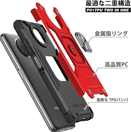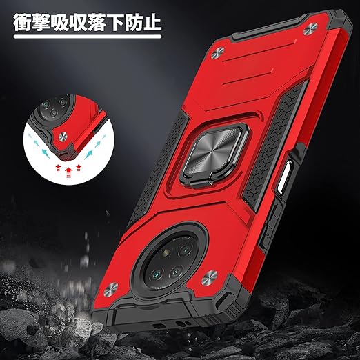 Redmi Note 9T 5G ケース リング 耐衝撃 衝撃吸収 米軍MIL規格取得 レンズ保護 TPU+PC リング付き 指紋防止 車載ホルダー対応 スタンド機能 防塵 薄型 軽量 落下防止 擦り傷防止 オッポ Note 9T 携帯カバー かわいい 赤82-171 a