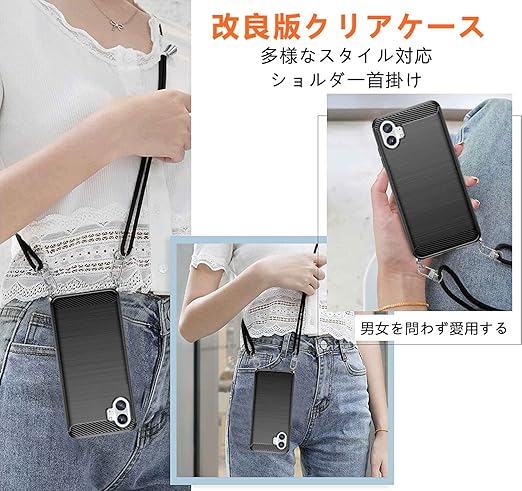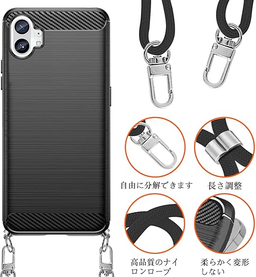 For Nothing Phone (1) ケース ショルダー 新型韓国 可愛い 薄型 軽量 TPU 耐衝撃 シリカゲル メッキ加 TPU ネック ショルダー ストラップ付き スマホ シリコン nothing phone 1 スマホケース 首掛け 肩掛け 斜めかけ 縄掛け ケース ストラップ付き 1.5MM 取り外し調節可能な ナッシング フォン (1) カバー b