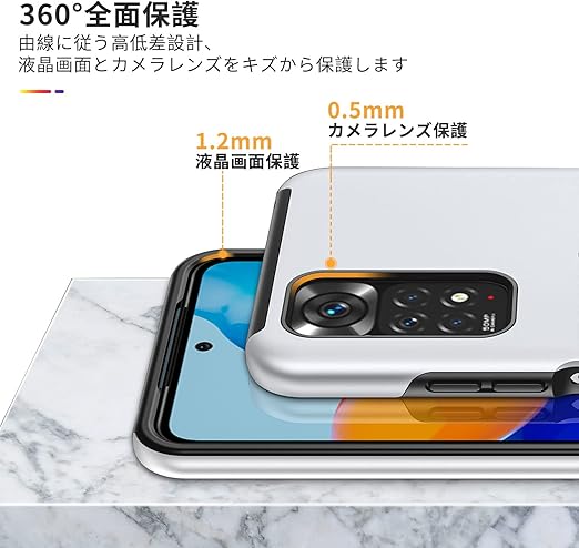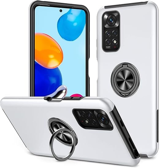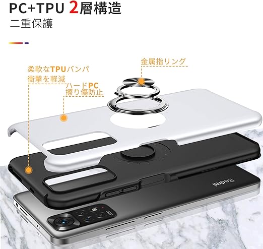 Xiaomi Redmi Note 11 用 ケース リング 耐衝撃 衝撃吸収 頑丈 車載ホルダー対応 スタンド機能 全面保護 TPU+PC バンパーケース 指紋防止 滑り防止 防塵 傷つけ防止 落下防止 おしゃれ ケース 旅行 オフィス 室内 アウトドア シャオミ Note11 用 携帯カバー(シルバー) a