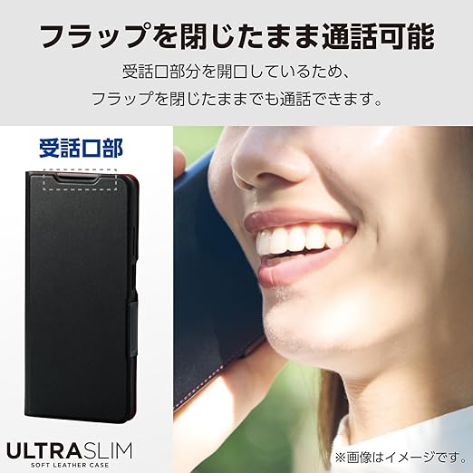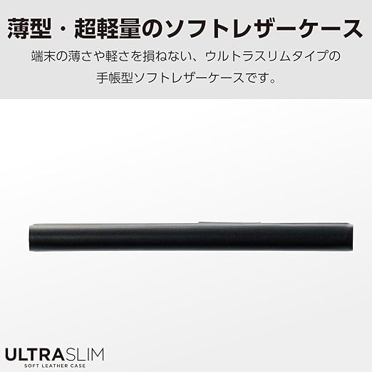 端末の薄さや軽さを損ねない、薄型・超軽量なウルトラスリムタイプのソフトレザーケース(手帳型)です。