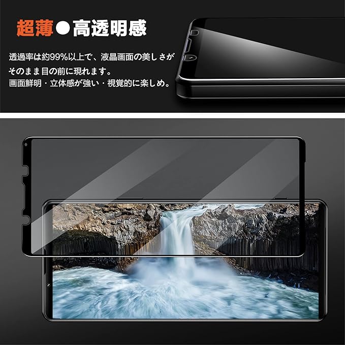 【高い光透過率】画質を徹底的に追求するため、光透過率99%の高級ガラスを使用しています。 透明なガラスフィルムの上に光フィルターフィルムを何層にも重ねているため、優れた透明性と一体感が生まれ、まるで何も貼っていないかのような美しさをそのまま鑑賞できます。
