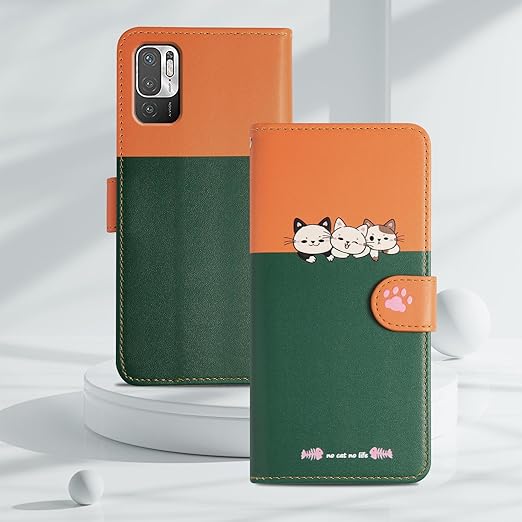 Reddylin 対応 Redmi Note 10 JE ケース 手帳型 xiaomi Redmi Note 10T ケース 手帳型 かわいい猫 レドミノート10JEケース 手帳型 全面保護 カード収納 レドミノート10JE スマホケース Redmi Note 10 JE カバー スタンド機能 Redmi Note 10 JE XIG02 ケース 6.5インチ 手触りが良い 耐衝撃-グリーン a