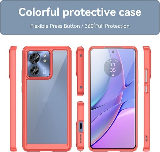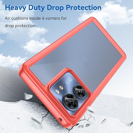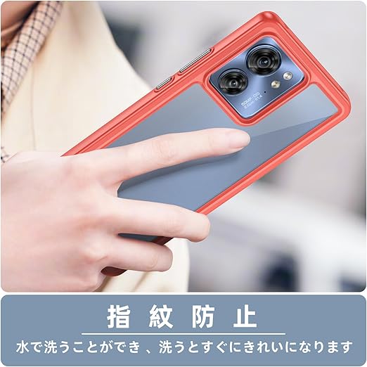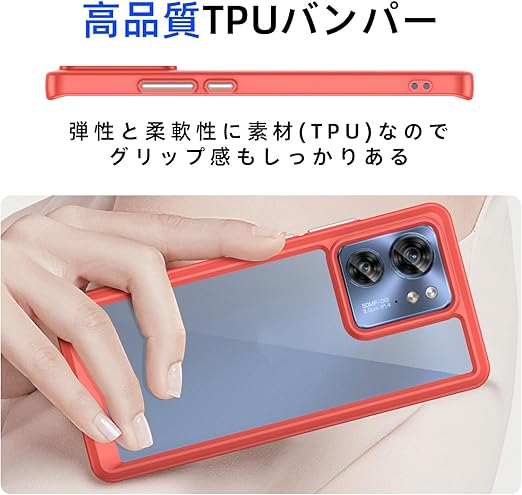 Motorola Moto G53 5G 用 ケースクリア 耐衝撃 薄型 米軍MIL規格取得 指紋防止 TPUバンパー+背面PC G53J 5G / G53Y 5G カバー レンズ保護 滑り防止 ストラップホール付き 黄変防止 滑り防止 携帯カバー 赤 R0113-MTG53-04 a