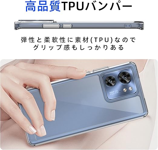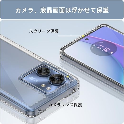 Motorola Moto G53 5G 用 ケースクリア 耐衝撃 薄型 米軍MIL規格取得 指紋防止 TPUバンパー+背面PC G53J 5G / G53Y 5G カバー レンズ保護 滑り防止 ストラップホール付き 黄変防止 滑り防止 携帯カバー 透明 R0113-MTG53-01 a