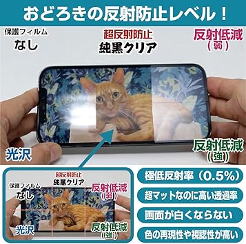 純黒クリア「Premium Matte Shield【超反射防止】」は反射率0.5%と高い反射防止性能を持ちながらも、高い透過率で白くならず黒が引き締まります。色の再現性や視認性に優れた『極低反射率 AR/AGタイプ(非光沢)の保護フィ