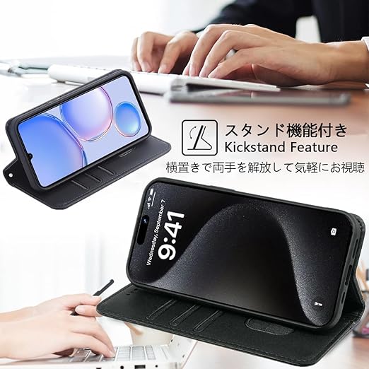 【機能性1:高品質PUレザー】外側のカバーには手触りがとても良い高品質の合成レザーを採用します。内側のスマホホルダーは柔軟なTPU素材を採用したソフトケースとなります。汚れにくくて指紋防止の特徴を持っております。耐衝撃の二重構造で落下の衝撃をうまく吸収します、本体をしっかりと守ります。