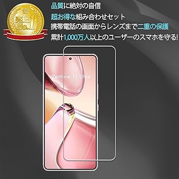 KPNS 日本素材製 ASUS Zenfone 12 Ultra 用 高透過率 ガラスフィルム カメラフィルム 強化ガラス カバー 簡単貼り付け 保護フィルム【2+2枚セット】 a