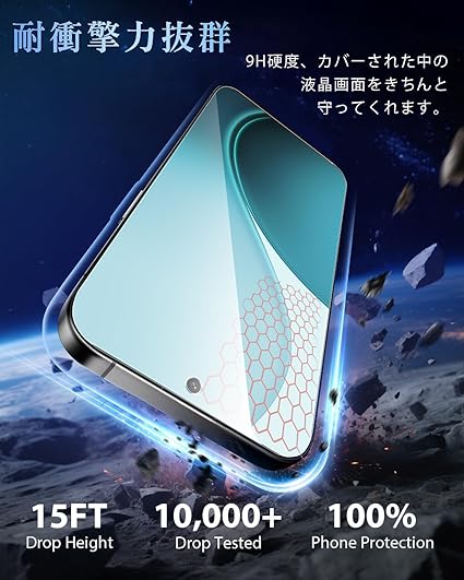 【硬度9H・耐衝撃】日本旭硝子素材を採用し、表面硬度9Hの最高強度のガラスを使用しています。万が一スマホが落ちてガラスが割れた場合でも、ガラスの破片が飛び散りにくい設計です。飛散防止加工が施されており、ガラスの破片から守ります