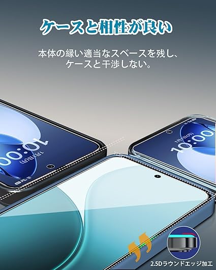 【貼り簡単・ケースと干渉せず】ガラスフィルムは気泡が入りにくい自己吸着強化フィルムです。専用ガイドを使ってフィルムをスマホ画面に合わせるだけで自然に吸着するので、誰でも