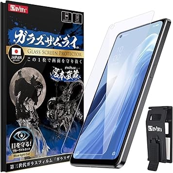 OVER's ガラスザムライ OPPO Reno7 A 用 ガラスフィルム ブルーライトカット 硬度10H らくらくクリップ付き 355-blue a