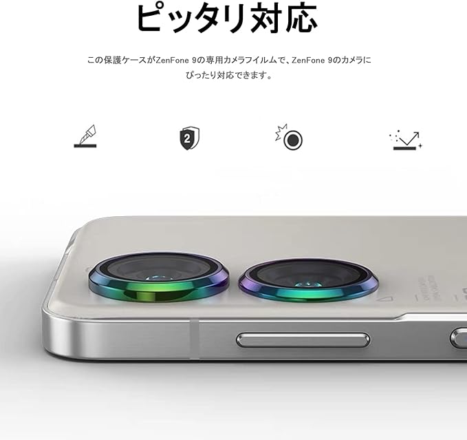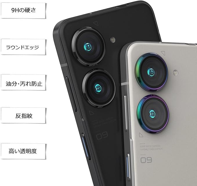 【傷を防止する】9Hの高い硬度がASUS ZenFone 9カメラレンズ対して全面保護を実現。飛散防止、