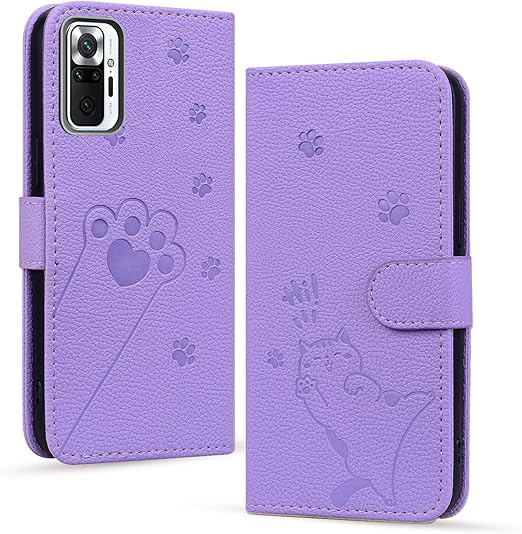 Xiaomi Redmi Note 10 JE ケース 手帳型 【Mldjomid】Redmi note 10t カバー XIG02 カバー 手帳型 redmi note 10je case 幸せな子猫 内蔵マグネット カード入れ 軽量 PUレザー 全面保護 スタンド機能 カード収納 Redmi Note 10 JE/Note 10T ケース 人気 上質 かわいい猫の足模様 (紫色) a