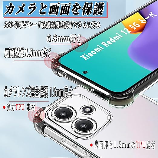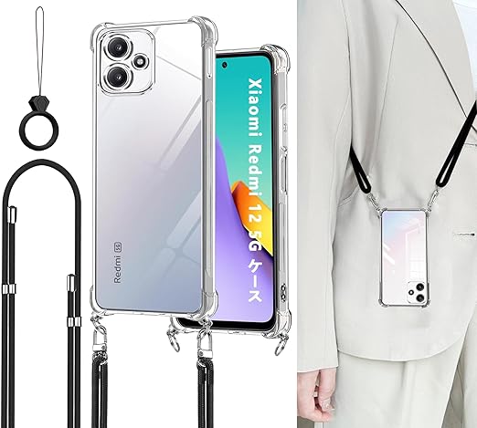 Ausrann Xiaomi Redmi 12 5G ケース レドミ12 5g スマホケース XIG03 ケース ショルダー ストラップ2枚付き 紐付き 首掛け 肩がけ 斜め掛け ストラップホール付き 薄型 軽量 耐衝撃 シリコン TPU バンパー 黄変防止 透明 カバ− 米軍MIL規格 Redmi 12 5G カバー(クリア) a